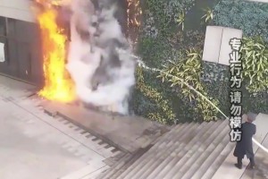 保安发现绿化燃起熊熊大火,仅凭一根水管就将火焰扑灭