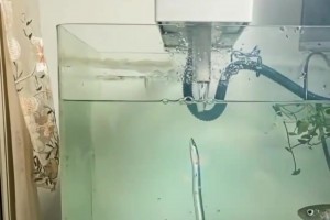 银龙鱼顺着水循环的流水一路往上游,最后真的爬进出水口里!